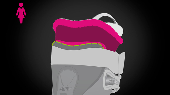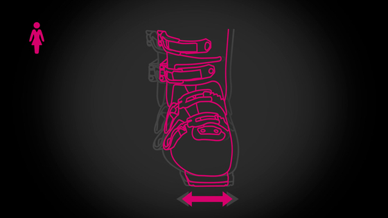 Une construction exclusive POWERCAGE, avec une structure en matériau plus rigide, assure une excellente transmission de puissance et une maniabilité optimale. Le canting peut être personnalisé en fonction des exigences de la skieuse.